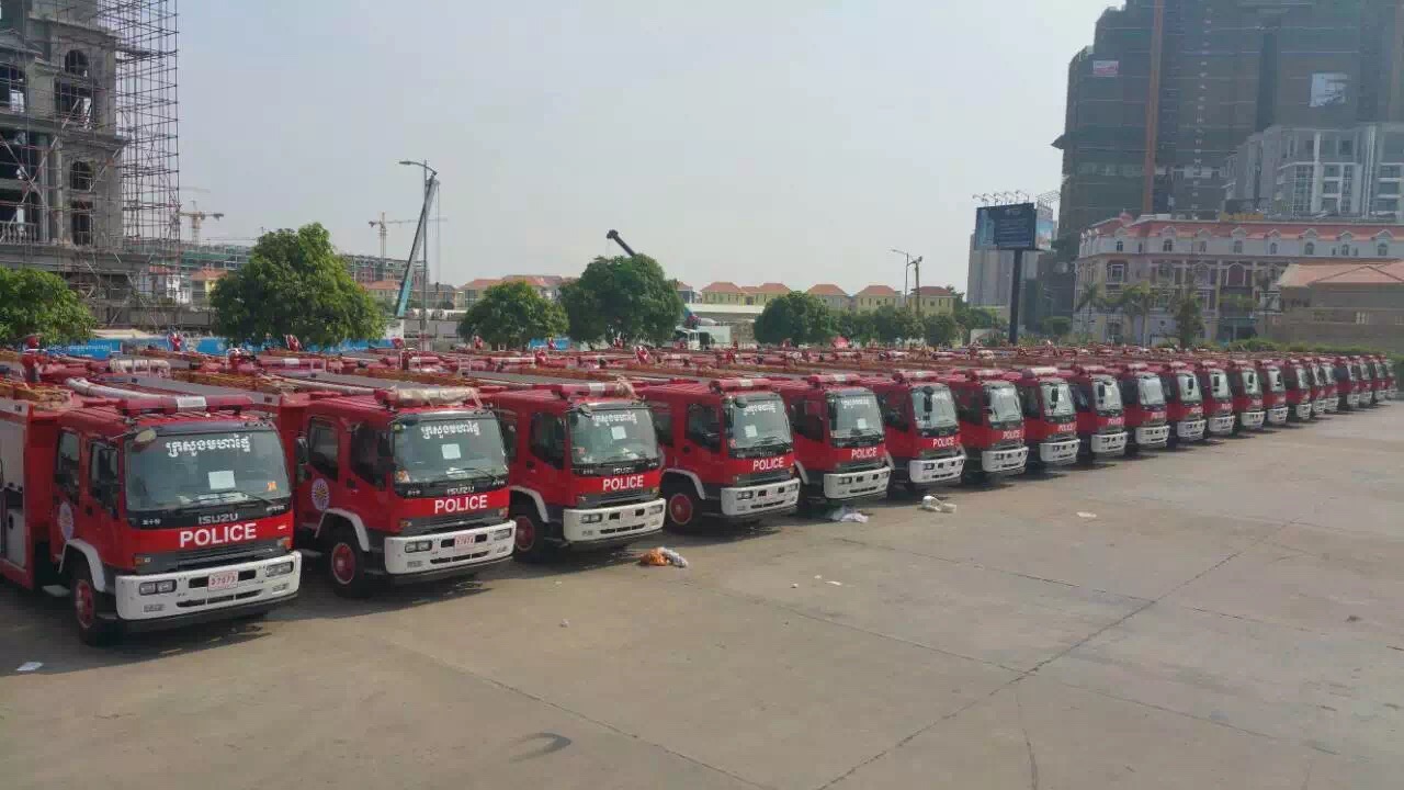 柬埔寨國(guó)在我公司簽訂115臺(tái)水罐消防車(chē),于5月16日順利到達(dá)目的地,程力公司的工作人員,得到了柬埔寨總理洪森的熱情接待和高度贊揚(yáng)。下面是我公司的消防車(chē)交接現(xiàn)場(chǎng):