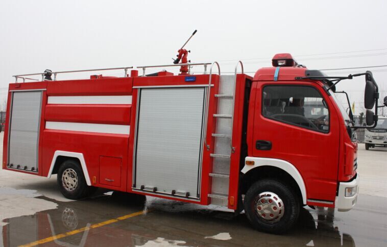 車身為整體方管鋼板結(jié)構(gòu),不銹鋼水液罐。車身前部為泵房,中部為水液罐,后部為器材箱,采用鋁合金組裝框架,分類裝夾器材,外型美觀。在車的兩側(cè)各有φ135mm的進水口,可通過放在車身頂部的4根吸水管從水源吸水。水泵的4個出水口分布在泵房的兩側(cè),其上裝有φ80的求閥,用以控制出水。